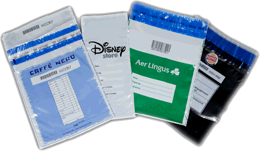 We hold a range of bags for all uses including, cash bags, coin bags, cctv evidence bags, hotel valuable bags & courier bags. All bags can be fully customised to promote your brand.